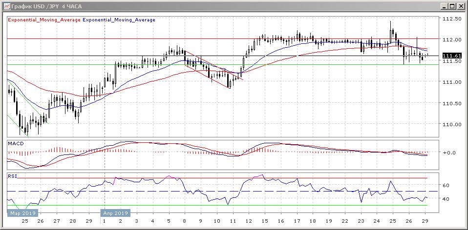 В конце прошлой недели наблюдалась смена восходящего тренда на этом рынке на противоположный. Скользящие средние с периодом 21 и 55 дней развернулись вниз и пересеклись, сообщая нам о смене восходящей тенденции. Рынок преодолел уровень поддержки на 111.84 и закрепился ниже данной отметки. С началом торгов в понедельник пара остаётся в пределах нового уровня поддержки на 111.39 и уровня сопротивления на 112.00. Гистограмма MACD опустилась в область ниже своей центральной линии и продолжает снижаться. Индикатор относительной силы тренда RSI уверенно опускается и достиг уровня 40, что показывает накопление потенциала для нисходящей тенденции.