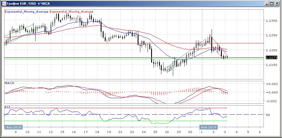 Если смотреть на четырёхчасовой график, то мы увидим, как наш восходящий канал успешно сменился на нисходящий, превратив техническую картину этого рынка в медвежью.