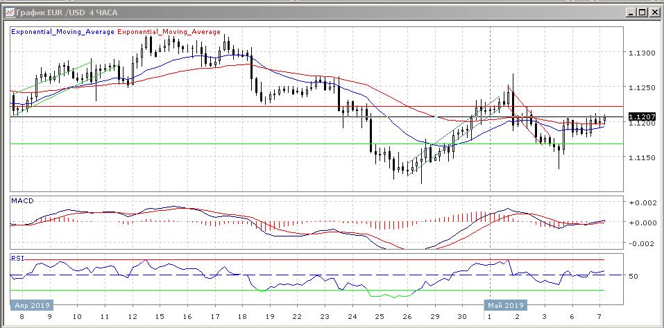Техническая картина данного рынка на четырёхчасовом графике выглядит нейтрально, даже можно сказать — уверенно нейтрально. Посмотрим, что нам покажет открытие торгов в Европе. Гистограмма MACD продолжает льнуть к своей центральной линии, а индикатор RSI