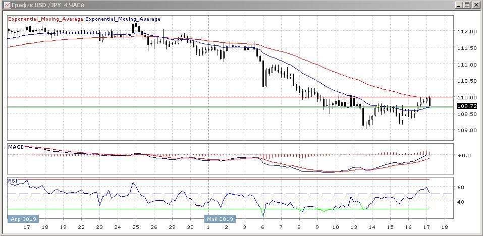 Четырёхчасовой график поднялся выше скользящей средней с периодом 21 день, но остаётся ниже скользящей средней с периодом 55 дней. Таким образом, они теперь выступают в качестве ближайших уровней поддержки на 109.67 и сопротивления на 109.98.
