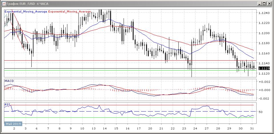 На четырёхчасовом графике скользящие средние с периодом 21 и 55 дней активизировались и продолжают двигаться вниз, подтверждая свой сигнал на продажу.