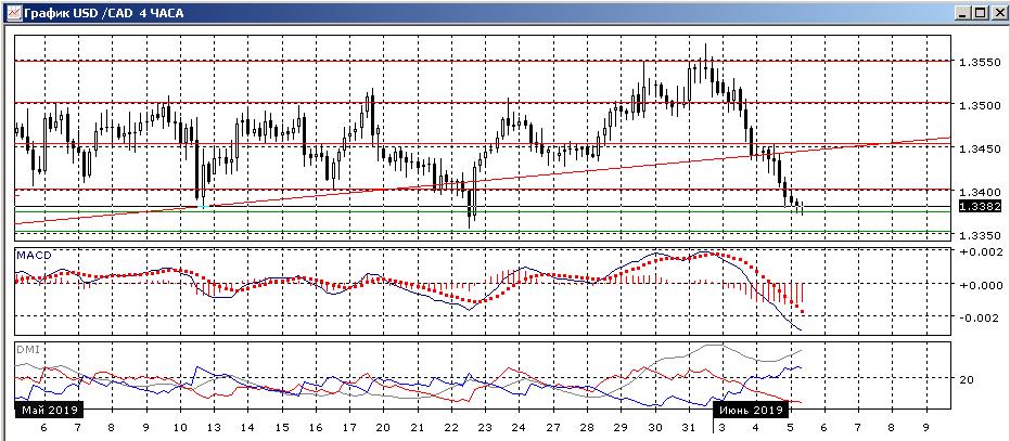 На дневном графике ситуация изменилась: пара преодолела поддержку на бывшей верхней границе диапазона 1,3500, , что сделало выход из него вверх в конце мая похожим на ложный пробой. После этого пара достигла нижней границы диапазона с конца апреля на 1,3375, было закрытие следующего «круглого» уровня 1,3400. Также пара снизилась ниже одного из вариантов восходящего тренда. Это повышает вероятность продолжения снижения, хотя пара уже близко от следующей сильной поддержки на 1,3350.
