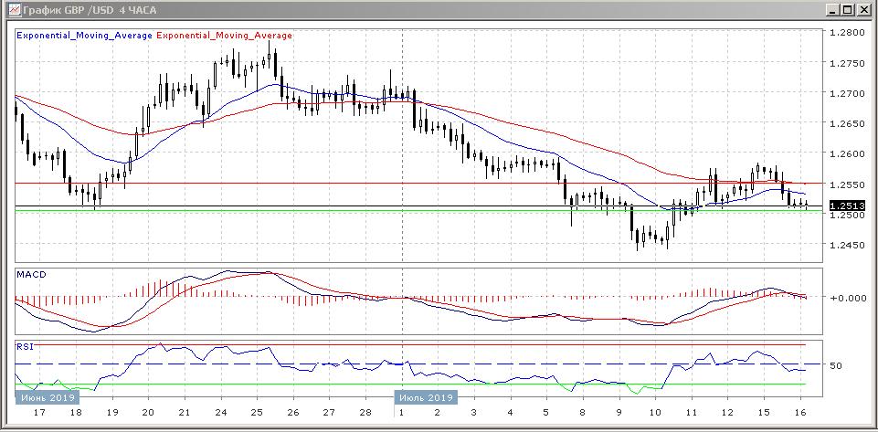 С открытием торгов в Азии во вторник данная валютная пара торгуется преимущественно с понижением и с небольшой инициативой в руках продавцов. Уровень поддержки определяется в районе отметки 1.2504, а уровень сопротивления на 1.2549, - это EMA55.