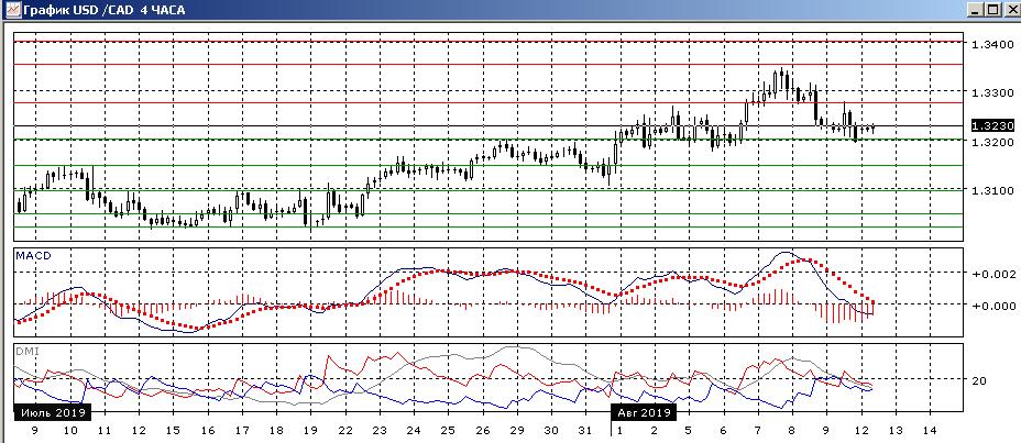 На четырёхчасовом графике пара вернулась к поддержке/сопротивлению 1,3200, уровень ограничивал рост 26 и 30 июля, и выступал поддержкой в начале августа. Преодоление этого уровня может открыть пространство для снижения к следующему «круглому» уровню на 1,3100. Однако пока пара выше 1,3200, рассчитывать на снижение рискованно, так как ранее в начале августа тестирования заканчивались отскоком вверх.
