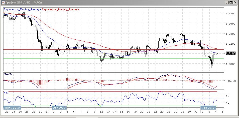 На четырёхчасовом графике скользящие средние с периодом 21 и 55 дней замедлились и прекратили снижение, что говорит о коррекции цены, а может и о начале восходящей тенденции.