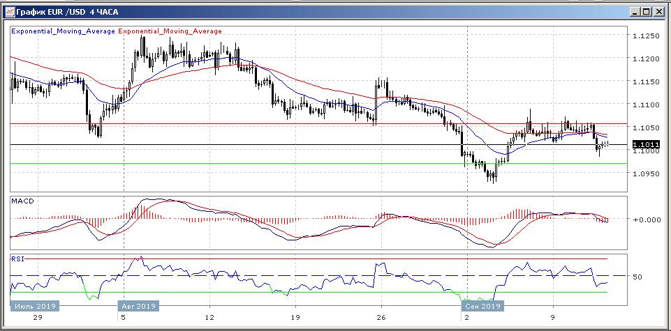 На четырёхчасовом графике скользящие средние с периодом 21 и 55 дней чуть оживились и развернулись вниз, сформировав сигнал на продажу данного торгового инструмента.