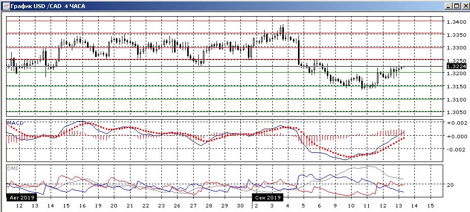 На четырёхчасовом графике сопротивление ниже 134,00, возможно укрепляется — при отскоке вверх от 132,00 рост снова остановился у максимумов 11-12 сентября. В этом масштабе образовалось медвежье расхождение максимумов пары и гистограммы MACD. Потенциально это облегчает откат снова к 132,00. По ADX тенденцией остаётся рост (DM+ выше DM-), но гистограмма MACD уже в отрицательной зоне, линия MACD имеет отрицательный наклон. Это может быть индикатором снижения в краткосрочной перспективе.