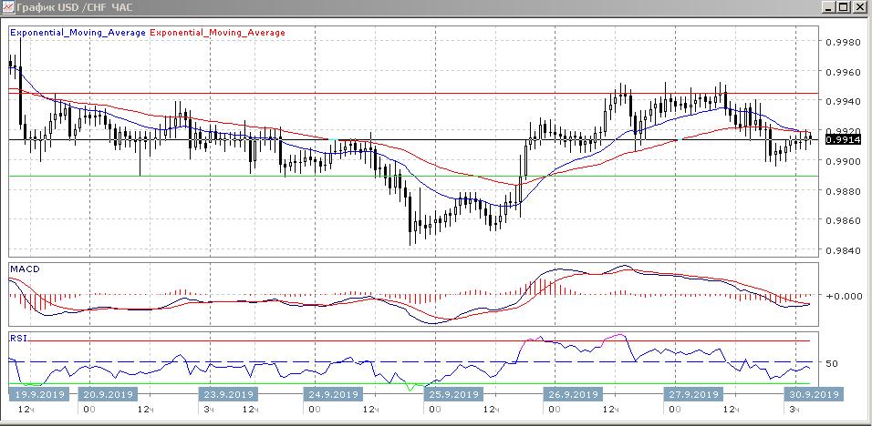 На торгах в Азии в понедельник валютная пара USD/CHF продолжает торговаться с понижением цены оставаясь в пределах уровня поддержки в районе 0.9889 и уровня сопротивления на 0.9944.