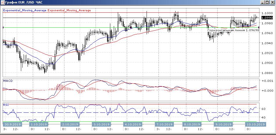 На часовом графике скользящие средние с периодом 21 и 55 дней развернулись вверх и теперь растут и ускоряются.