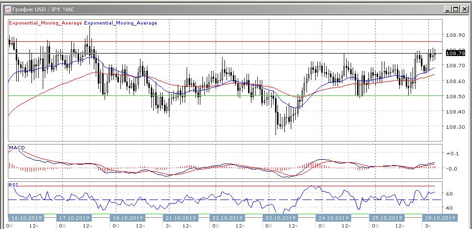 Техническая картина данного рынка так же выглядит в пользу покупателей. На часовом графике гистограмма MACD вышла в область выше своей центральной линии, а индикатор RSI вернулся к линии 60, что говорит о хорошей силе текущего движения.