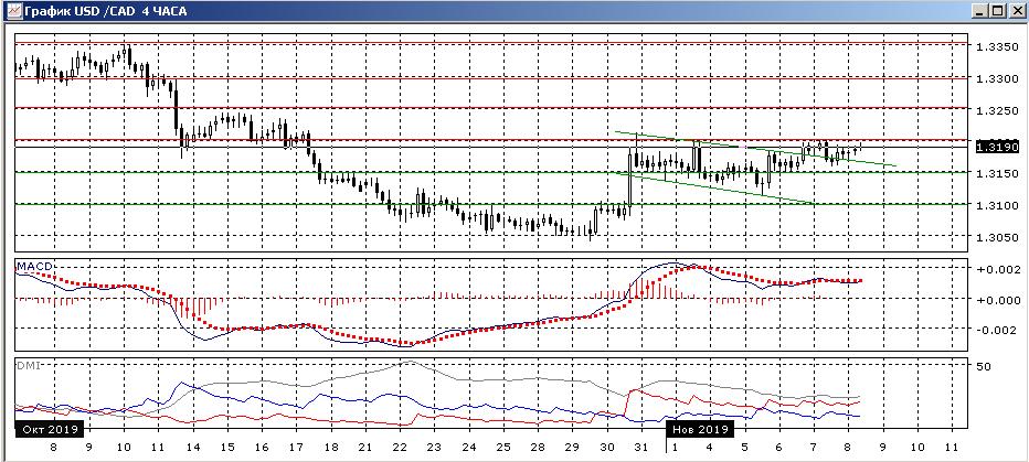На четырёхчасовом графике нет изменений: пара остаётся в узком диапазоне с 23 октября и сейчас около центра этого диапазона 140,00. По ADX индикаторам направленного движения слова флэт: DM+ и DM- близки при снижении ADX. Гистограмма MACD около нуля, линия MACD почти горизонтальна. Пока лучше подождать выхода из диапазона.