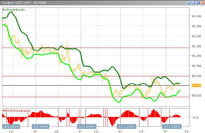 сопротивлением 90.00, а снизу - поддержкой 88.90. На