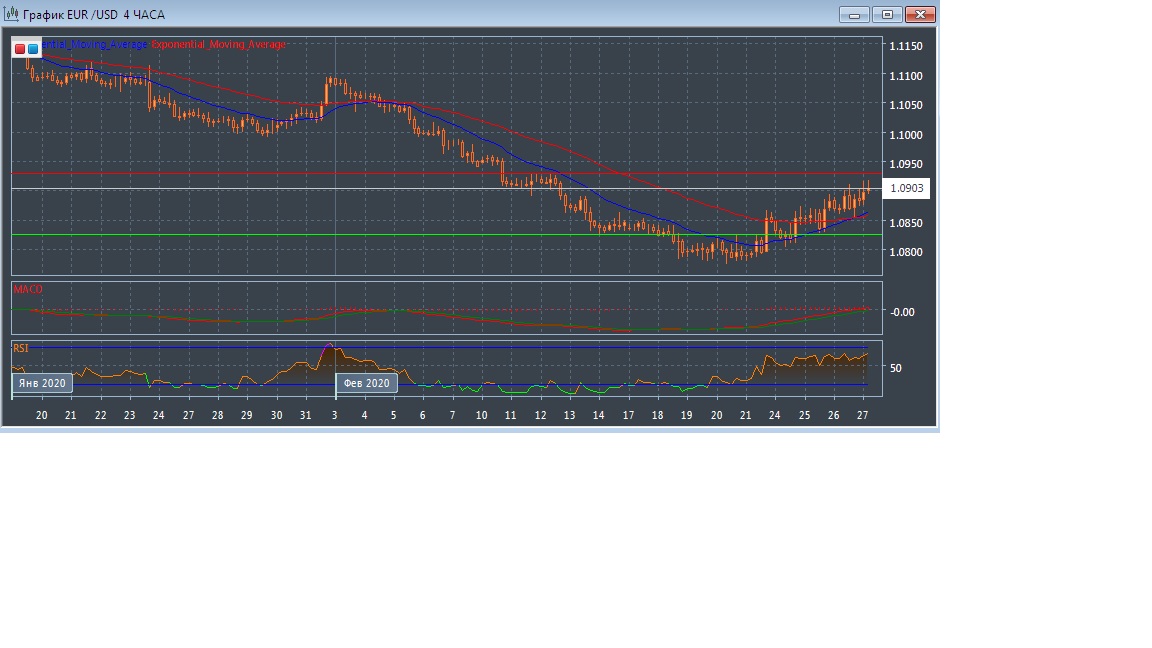 На торгах в Азии в четверг валютная пара EUR/USD продолжает торговаться с небольшим повышением котировок, пребывая в пределах уровня поддержки на 1.0826 и уровня сопротивления на 1.0928. Четырёхчасовой график развивается теперь заметно выше экспоненциальных скользящих средних, что свидетельствует о смене потенциала на бычий в краткосрочной перспективе.