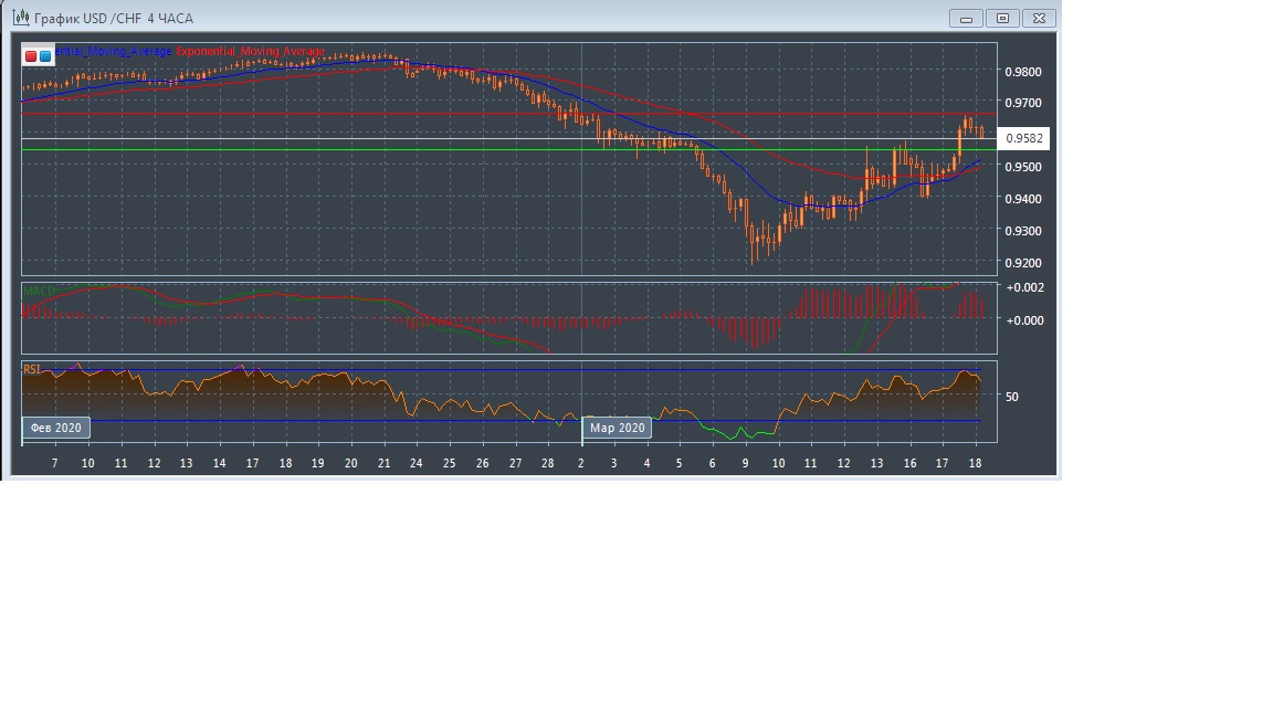 На четырёхчасовом графике скользящие средние с периодом 21 и 55 дней развернулись вверх и ускорились, увеличивая расхождение, после формирования сигнала на покупку. При этом график рынка развивается в области выше экспоненциальных скользящих средних, что говорит о бычьем потенциале данного рынка в краткосрочной перспективе.