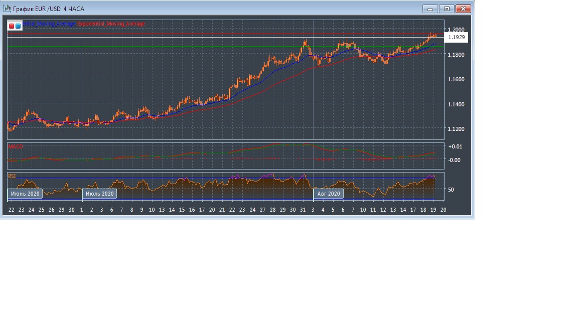 На торгах в Азии в среду валютная пара EUR/USD торгуется с повышением котировок, оставаясь в пределах уровня поддержки на 1.1853 и уровня сопротивления на 1.1955. Четырёхчасовой график остаётся в зоне выше экспоненциальных скользящих средних, что свидетельствует о бычьем настрое данного рынка в краткосрочной перспективе.