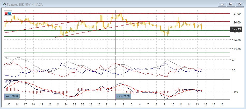 Уровни сопротивления: 125,65; 126,00