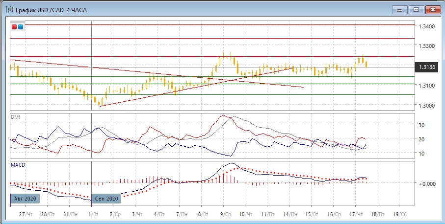 На дневном графике пара достигла уровня сопротивления 1,3240 (поддержка в начале августа и верхняя граница диапазона в середине августа). При этом пара снизилась от этого уровня, и может образоваться "падающая звезда", что укрепляет сопротивление на 1,3250 и может оставить пару в диапазоне 1,3140 -1,3240. Так как от 1,3240 произошёл хорошо выраженный откат, ближайшей целью видится возвращение к поддержке на 1,3140.