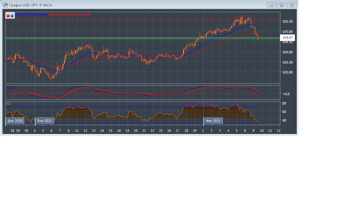 В течение азиатской торговой сессии во вторник валютная пара USD/JPY торгуется со значительным понижением котировок, оставаясь в пределах текущего уровня поддержки на 104.60 и уровня сопротивления в районе отметки 105.58.