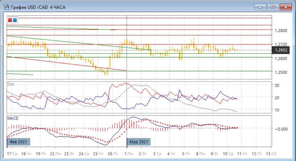 На дневном графике ситуация не изменилась: пара остаётся в относительно узкой консолидации с начала марта, нижняя граница которой - сильная зона поддержки 1,2600-1,2630, а верхняя граница - уровень сопротивления 1,2690. После образования "молота" на прошлой неделе пара получила поддержку на нижней границе, откуда произошёл отскок почти до верхней границы. Более долгосрочно сохранение пары выше ключевой поддержки - зоны 1,260-1,2630, является бычьим сигналом, так как показывает отсутствие поддержки для снижения даже при благоприятных для канадского доллара фундаментальных факторов.