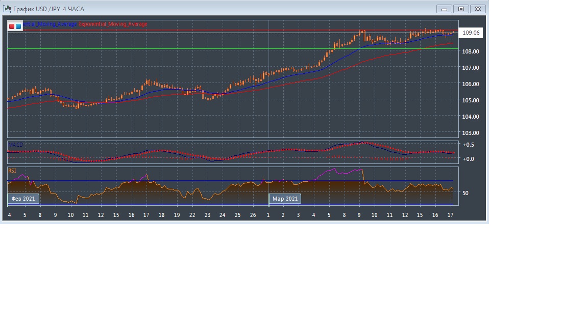 Скользящие средние с периодом 21 и 55 дней чуть ускорились и продолжают движение вверх, сохраняя расхождение, что является признаком сохраняющегося бычьего тренда данного рынка в краткосрочной перспективе. Четырёхчасовой график прогрессирует чуть выше экспоненциальных скользящих средних, так же демонстрируя продолжение восходящего потенциала этого рынка в краткосрочной перспективе.