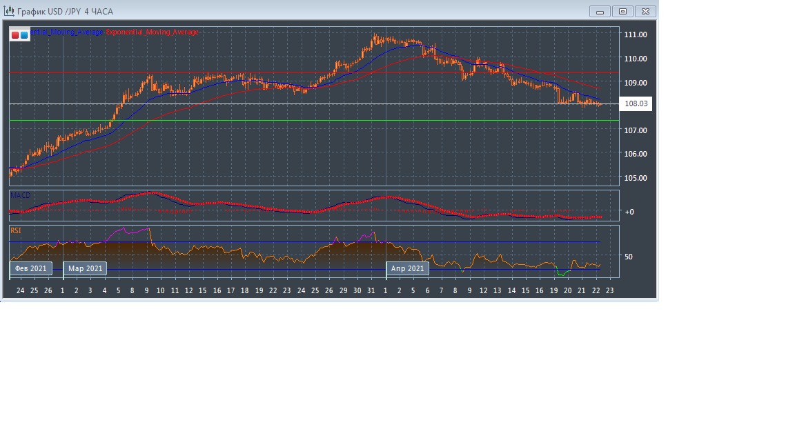В течение азиатской торговой сессии в четверг валютная пара USD/JPY торгуется с небольшим понижением котировок, оставаясь в пределах текущего уровня поддержки на 107.33 и уровня сопротивления в районе отметки 109.32.