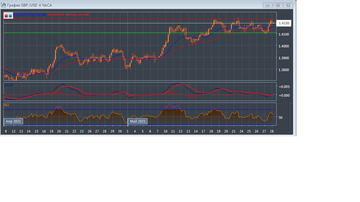 На четырёхчасовом графике скользящие средние замедлились, но продолжают движение вверх, сохраняя минимальное расхождение, что свидетельствует в пользу остающегося, восходящего потенциала данного рынка в краткосрочной перспективе.