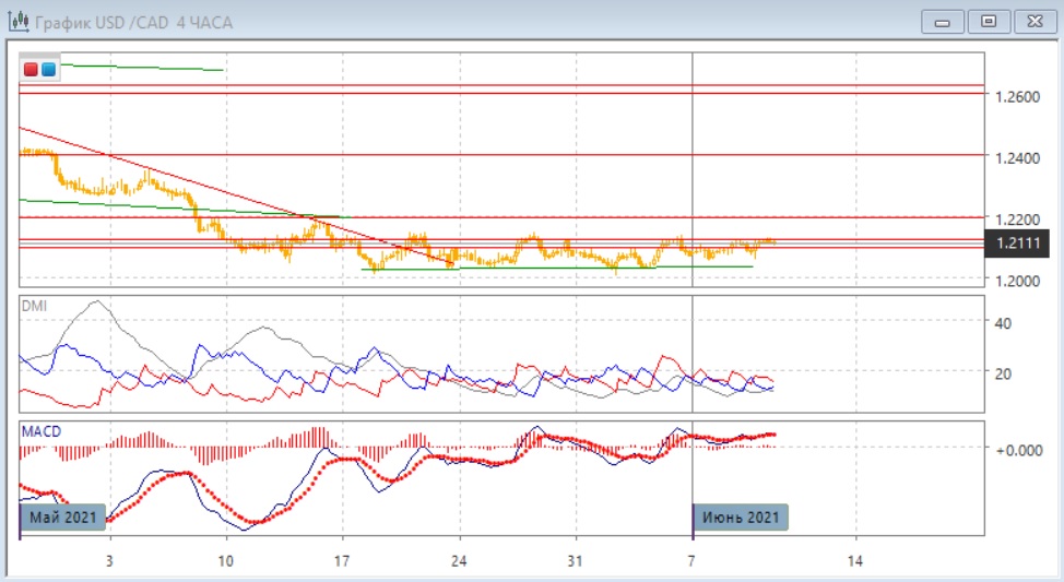 На четырёхчасовом графике пара преодолела уровень 1,2100, и теперь пара консолидируется в ниже верхней границы диапазона 1,2030-1,2130. Это увеличивает вероятность выхода из него вверх. Но лучше дождаться, когда это фактически произойдёт.