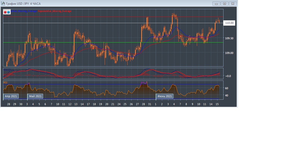 Скользящие средние с периодом 21 и 55 дней развернулись вверх и продолжают движение ускоряясь и увеличивая расхождение, что демонстрирует преимущество быков в краткосрочной перспективе. Четырёхчасовой график прогрессирует заметно выше экспоненциальных скользящих средних, что так же говорит о восходящем потенциале этого рынка.