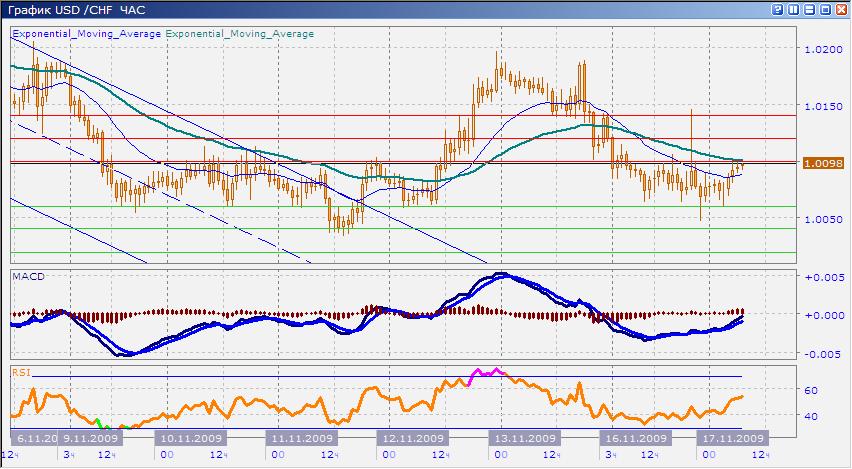 В пятницу 13 ноября после двух попыток дотянуться до уровня 1.0200 пара закрылась с понижением, которое было продолжено на торгах в понедельник. Снижение не было сильным, пара получила поддержку в районе 1.0060, от этого уровня пара сегодня растет, тестируя отметку 1.0100. Средние скользящие ЕМА21 и ЕМА55 снижаются, но замедляют свое нисходящее движение. Индикаторы MACD и RSI, находясь под своими центральными линиями, уверенно растут. Цель пары вверх — преодоление уровня 1.0100, где ей окажет сопротивление нисходящая средняя скользящая ЕМА55. Далее — 1.0120 и 1.0140. Движение вниз направится к 1.0060, затем к 1.0040 (с возможным обновлением минимума среды 11 ноября на 1.0034.
