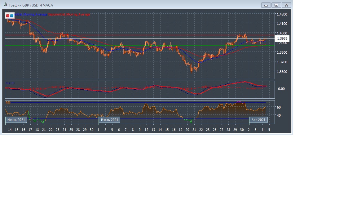 На четырёхчасовом графике скользящие средние замедлились, но продолжают движение вверх, сохраняя расхождение, что свидетельствует в пользу восходящего движения данного рынка в краткосрочной перспективе.