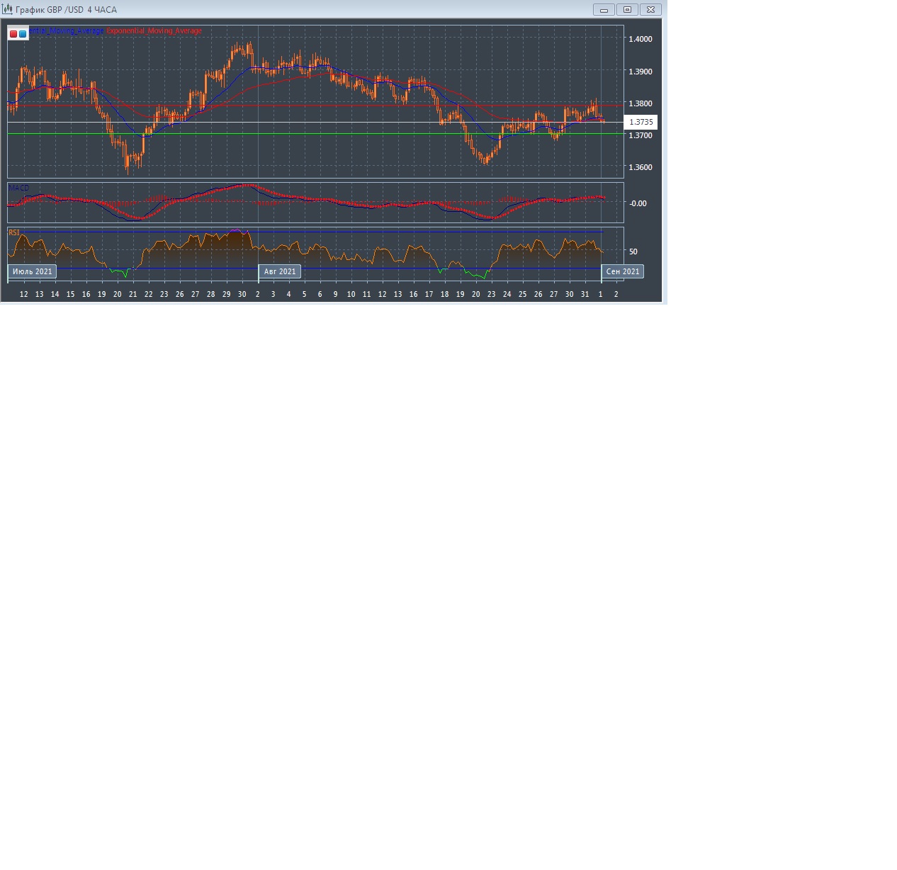 С открытием торгов в Азии в среду данная валютная пара торгуется с небольшим понижением котировок, оставаясь в пределах текущего уровня поддержки на 1.3799 и уровня сопротивления на 1.3789, где график рынка прогрессирует чуть ниже экспоненциальных скользящих средних с периодом 21 и 55 дней, демонстрируя зарождение нисходящего тренда на этом рынке в краткосрочной перспективе.