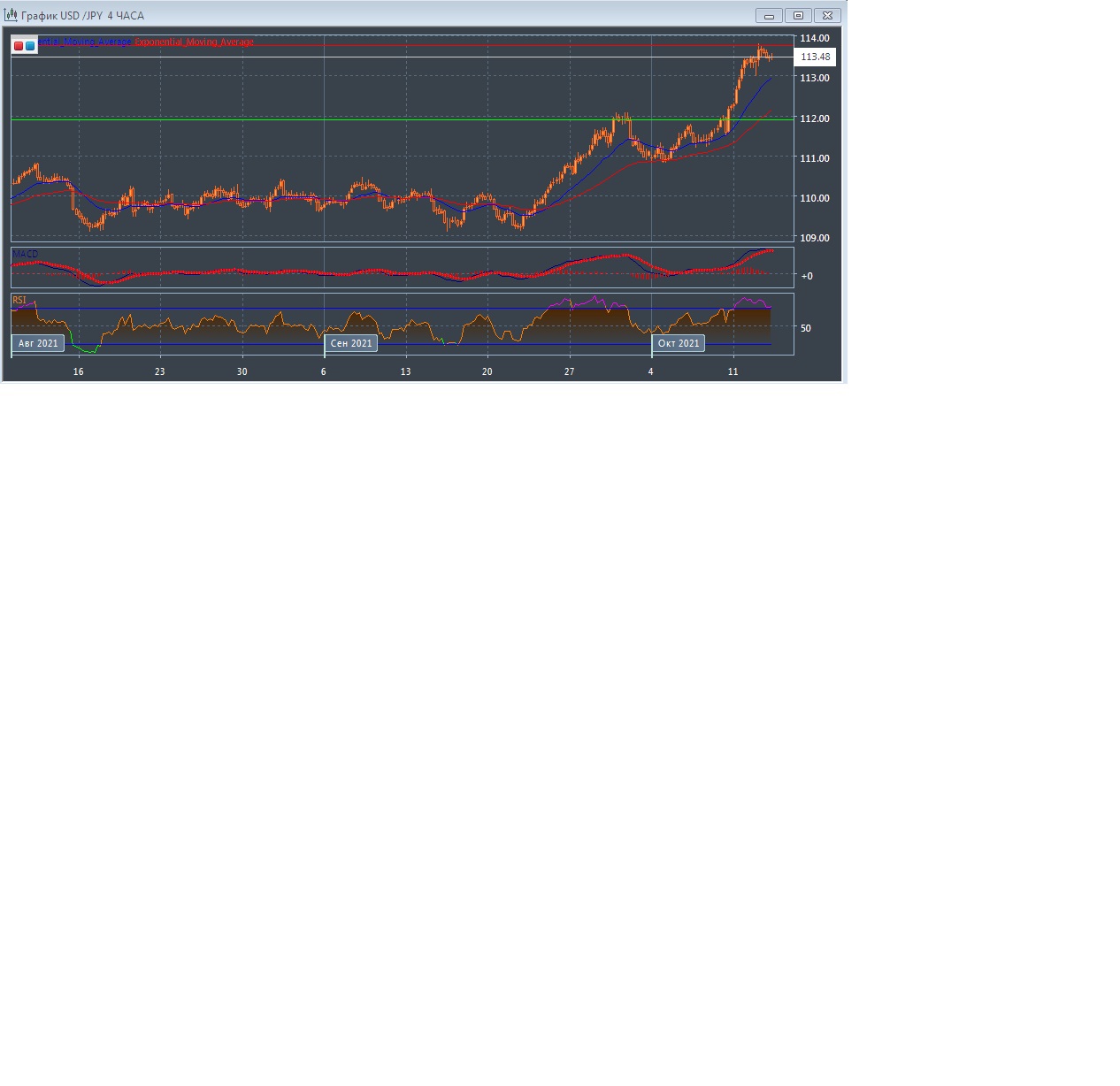 Скользящие средние с периодом 21 и 55 дней ускоряются и продолжают движение вверх, увеличивая расхождение, что предвещает дальнейшее развитие восходящей тенденции на этом рынке в краткосрочной перспективе. Четырёхчасовой график прогрессирует в области значительно выше экспоненциальных скользящих средних, что подтверждает дальнейшее развитие восходящего тренда на этом рынке в краткосрочной перспективе.