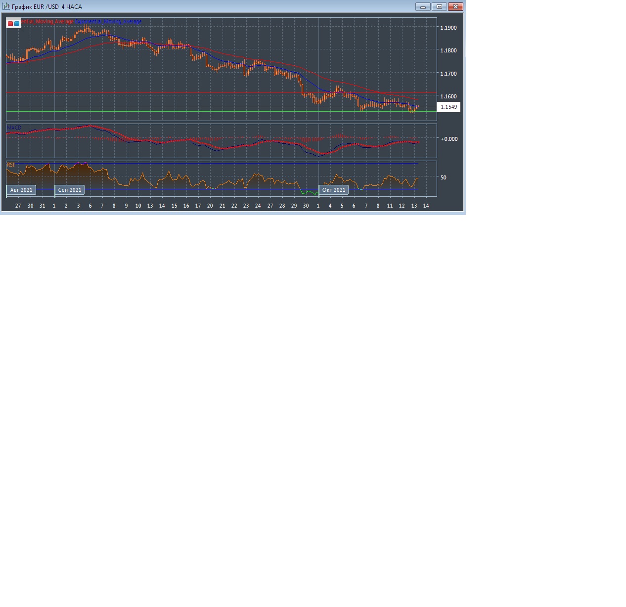 На торгах в Азии в среду валютная пара EUR/USD торгуется с понижением котировок, оставаясь в пределах текущего уровня поддержки на 1.1529 при уровне сопротивления на 1.1612. Четырёхчасовой график продолжает развиваться в области чуть ниже экспоненциальных скользящих средних, демонстрируя возможное продолжение нисходящей тенденции данного рынка в краткосрочной перспективе.