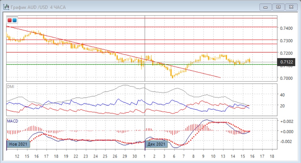 На четырёхчасовом графике коррекция затянулась - она продолжается уже больше волны роста. Для краткосрочной перспективы важно, устоит ли поддержка на 0,7100. При преодолении этого уровня пара может вернуться к (начальная точка волны роста) 0,7000, и это облегчается отсутствием обоснованной поддержки до этого уровня. Однако если пара удерживается выше 0,7100, это делает целью возвращение к максимумам декабря у 0,7200.
