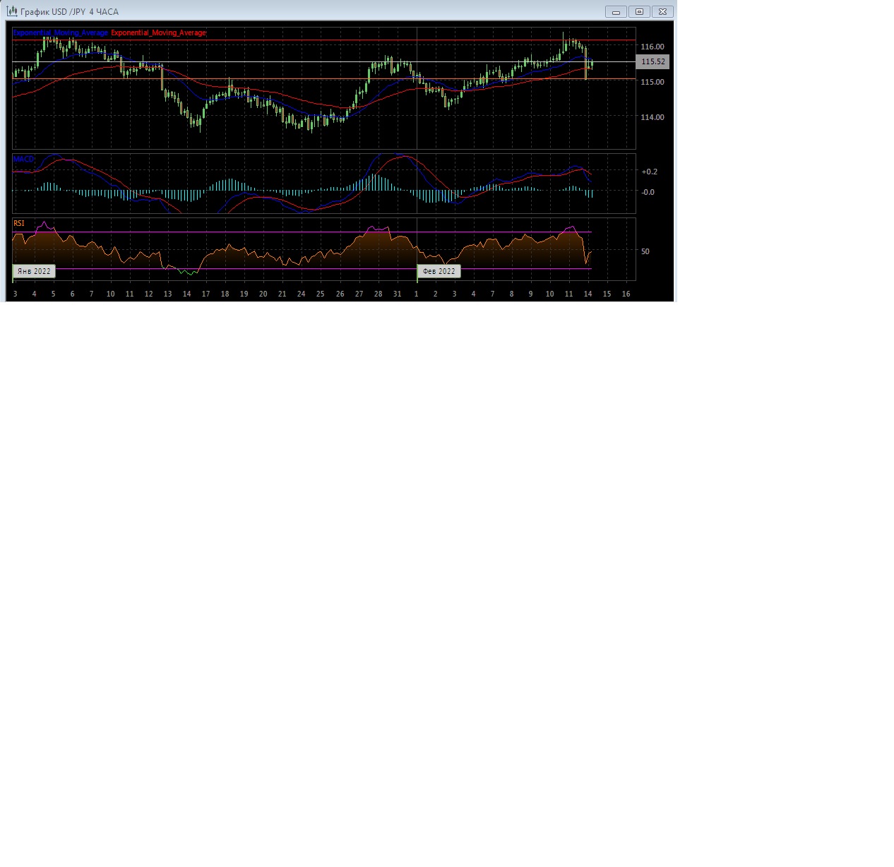 Скользящие средние с периодом 21 и 55 дней развернулись вниз и сохраняют небольшое расхождение. Четырёхчасовой график прогрессирует между экспоненциальных скользящих средних, демонстрируя продолжение нейтрального тренда на этом рынке в краткосрочной перспективе.