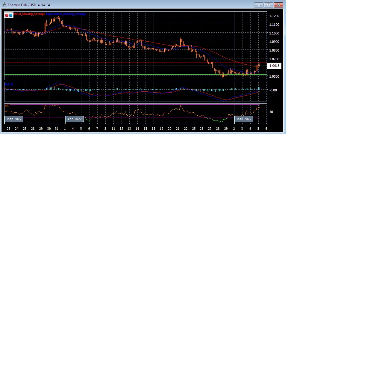 На торгах в Азии в четверг валютная пара EUR/USD торгуется с повышением котировок, оставаясь в пределах текущего уровня поддержки на 1.0511 при уровне сопротивления на отметке 1.0647. Четырёхчасовой график прогрессирует выше экспоненциальных скользящих средних, демонстрируя укрепляющуюся восходящую тенденцию на данном рынке в краткосрочной перспективе.
