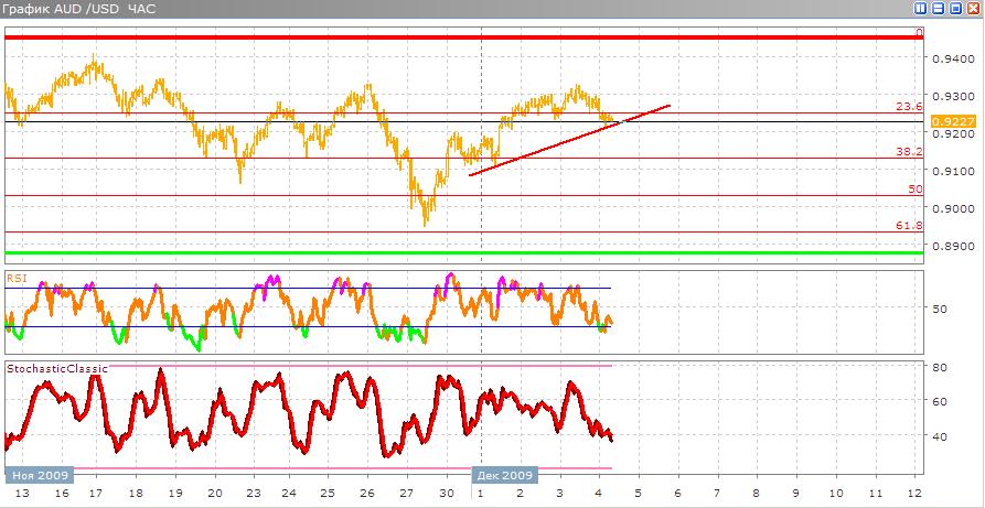 Австралийский доллар не показал роста за текущий промежуток времени, прогноз оправдался, он совершил небольшое коррекционное движение, сейчас оперевшись на линию поддержки направится к уровню в 0,9300. Возможен, также и альтернативный вариант пробой линии поддержки и продажа до уровня в 38,2% по Фибоначчи.