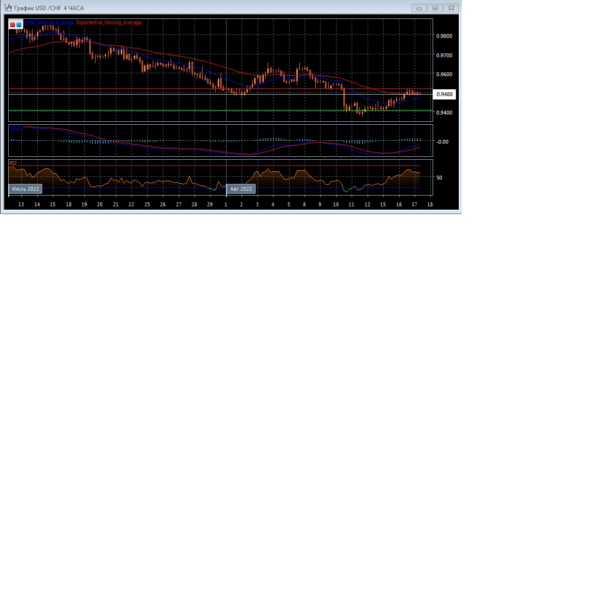 На четырёхчасовом графике скользящие средние с периодом 21 и 55 развернулись вверх, постепенно сокращая расхождение, что говорит в пользу появления восходящего тренда на этом рынке. Четырёхчасовой график котировок прогрессирует чуть выше экспоненциальных скользящих средних, что является свидетельством бычьего потенциала данного рынка в краткосрочной перспективе.