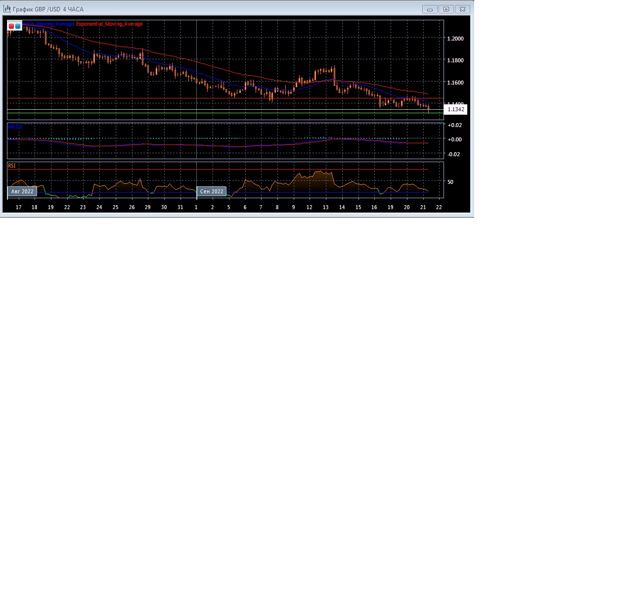 На четырёхчасовом графике скользящие средние продолжают движение вниз, увеличивая расхождение, что говорит в пользу нисходящего тренда на данном рынке в краткосрочной перспективе.