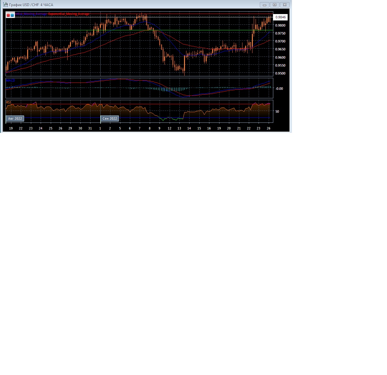 На четырёхчасовом графике скользящие средние с периодом 21 и 55 продолжают движение вверх и ускорились, увеличивая расхождение, что говорит в пользу бычьего потенциала данного рынка. Четырёхчасовой график котировок прогрессирует выше экспоненциальных скользящих средних, что так же является свидетельством восходящей тенденции рынка в краткосрочной перспективе.
