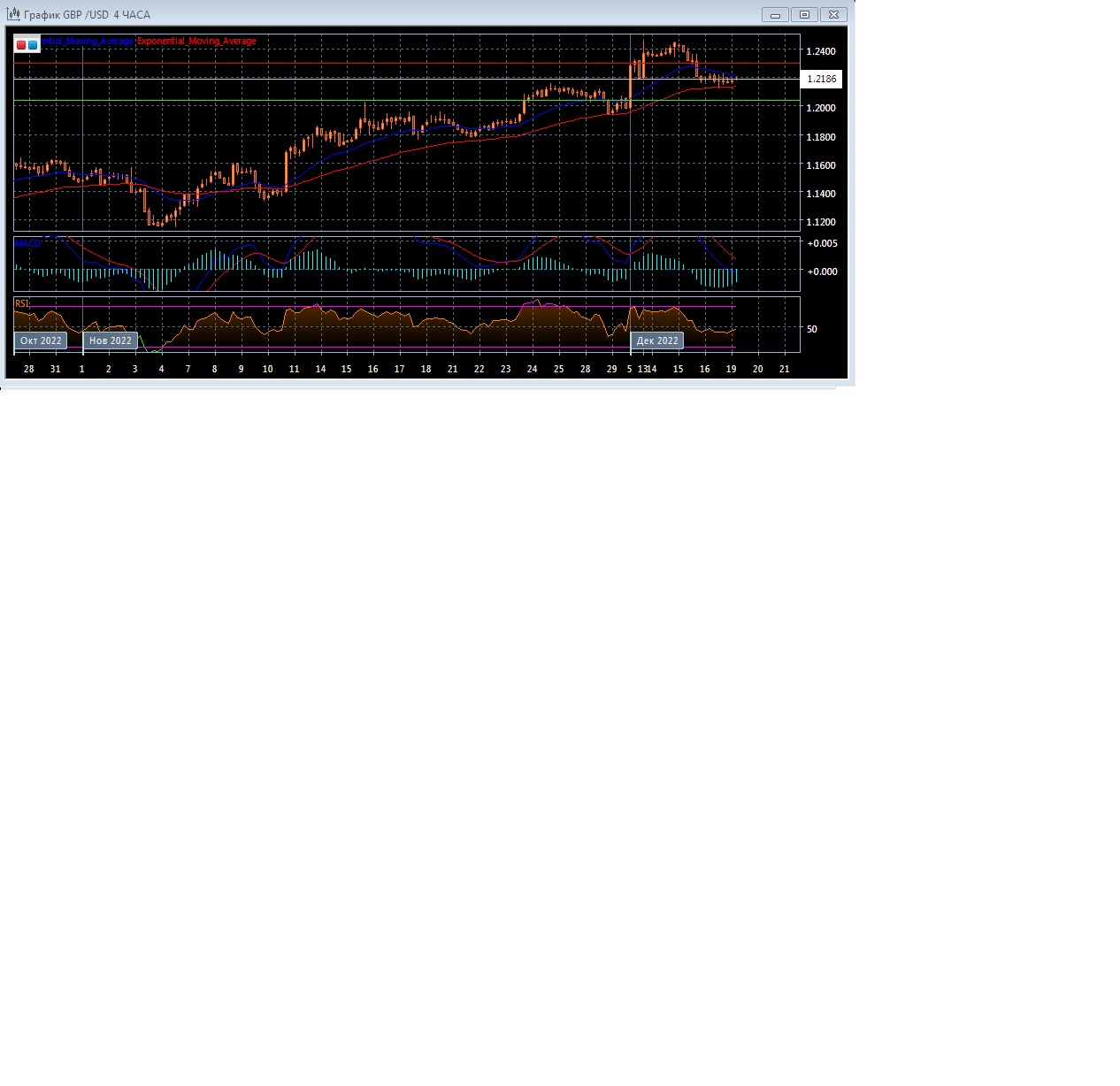 На четырёхчасовом графике скользящие средние продолжают разворачиваться вниз, сокращая расхождение, что говорит в пользу появления нисходящего тренда на данном рынке в краткосрочной перспективе.