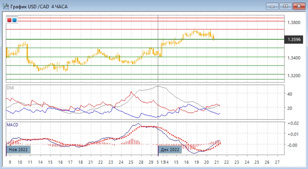На четырёхчасовом графике около 1,3700 образовалось три максимума, при откате пара получила поддержку на ближайшем "круглом" уровне 1,3600. Здесь снижение может остановится, так как в начале декабре уровень проявился как сопротивление. При преодолении уровня 1,3600 пара может достичь психологически важного уровня 1,3500, поддержка на котором может быть более сильной.
