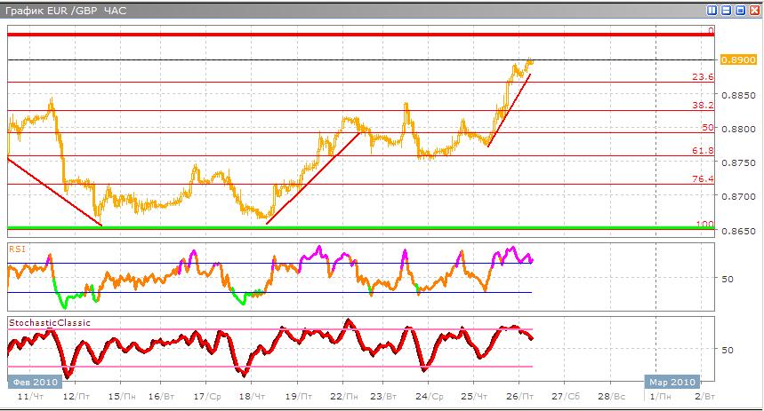 Валютная пара совершает резкий рост и пробивает уровень сопротивления и сейчас находится в восходящем движении. Сейчас торговля ведется между 23,6% и 0% по Фибоначчи, скорее всего далее последует корректировка к 38,2% по Фибоначчи. В альтернативном варианте валютная пара продолжит движение вверх и только лишь сопротивление может остановить ее. Торговые индикаторы указывают нам на начало сигнала продажи, Stohastic пересекается скользящими средними сверху вниз в зоне перекупленности и идет по направлению вниз, а RSI также выходит из этой зоны по направлению вниз.