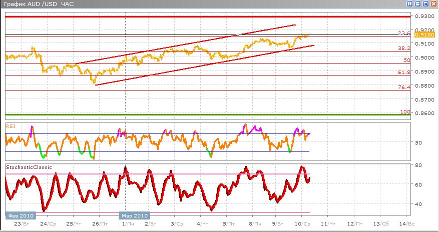 Австралийский доллар находится в восходящем канале, после пробоя линии сопротивления или уровня в 23,6% по Фибоначчи продолжает движение по направлению вверх, скорее всего в дальнейшем он не будет его изменять, хотя небольшие откаты возможны в пределах канала. В альтернативном варианте торговая пара отскочит от уровня в 23,6% по Фибоначчи и уйдет вниз к 38,25 и ниже. Стандартные индикаторы торговли указывают на сигнал к покупке но не рост будет ограничен, Stohastic пересекается скользящими средними снизу вверх но происходит это очень близко к зоне перекупленности, а RSI подходит к зоне перекупленности, но остается направлен вверх .