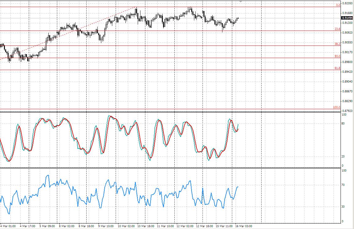 Австралийский доллар также находится в боковом движении между двумя сильными уровнями это 0% или 0,9190 и 23,6% или 0,9100. Скорее всего, после заявления Резервного Банка Австралии следует, что валютная пара также останется в пределах этого канала. В альтернативном варианте возможно, что австралиец начнет падение по отношению к доллару, это может произойти вследствие ухудшения экономической ситуации на рынках и инвесторы будут вынуждены переложится в доллары США. Стандартные индикаторы торговли указывают на слабый сигнал к покупке, Stohastic пересекается скользящими средними снизу вверх но происходит это очень близко к зоне перекупленности, а RSI подходит к зоне перекупленности, но остается направлен вверх .