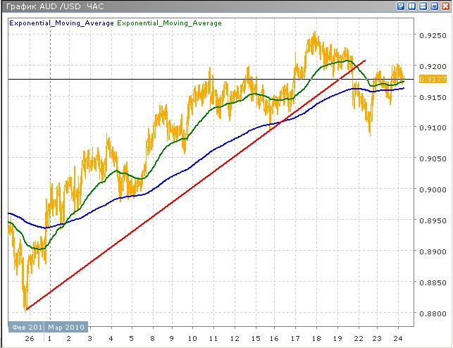 Валютная пара aud/usd находится в состоянии широкого волатильного бокового тренда. Торговый диапазон в течении зимы и начала весны находится в пределах 0.86-0.93. Сейчас котировки находятся в верхней части указанного диапазона. За время роста на графиках образовался повышательный канал с двумя точка соприкосновения. Но цены не смогли в ней удержаться, и 19 марта растущий тренд был сломан. Сейчас котировки находятся на уровне 0.918, что соответствует уровню двухнедельной давности. Вблизи находится сильный уровень поддержки в районе 0.9100. Можно предположить, что сходу такой уровень пройти не удастся. Поэтому котировки могут находиться в пределах текущих значений длительное время. Снижение возобновится, когда комбинация скользящих средних с периодами 55 и 200 пересечется. Но пока они не спешат этого делать, двигаясь горизонтально параллельными курсами. Целью понижения в таком случае можно будет считать достижения годового минимума в районе 0.8600.