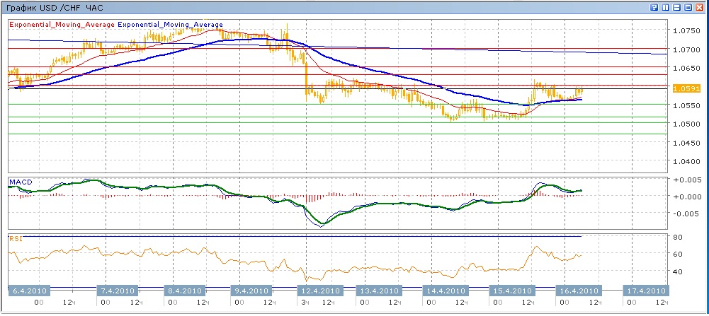 Снижение пары приостановилось 14 апреля, когда она в течение суток не могла преодолеть поддержку на 1.0520. В четверг наблюдался ее рост — пара достигла уровня 1.0600, но закрепиться выше него не смогла и откатилас ь к 1.0560. С начала сегодняшних торгов пара слабо растет, средние скользяшие ЕМА21 и ЕМА55 пересеклись вверх и слабо растут. Индикаторы MCD и RSI находятся выше своих центральных линий ипосле небольшого снижения также растут. Цель вверх на сегодня — преодоление уровня 1.0600, далее 1.0630 и 1.0650. Движение вниз будет тестировать поддержку на 1.0550, затем поддержку на 1.0520 и после протестирует отметку на 1.0500.