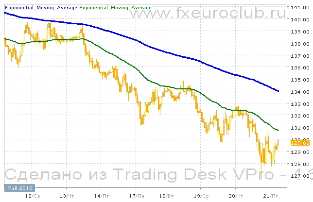 Валютная пара gbp/jpy находится в состоянии сильного падающего тренда. Сейчас котировки находятся ниже минимумов панического обвала 6 мая. Целью падения является уровень в районе 120.00. На данный момент большинство признаков подтверждают наличие понижательного тренда. Комбинация скользящих средних с периодами 55 и 200 сейчас находится в положении нисходящего движения, поскольку быстрая линия устойчиво находится ниже медленной. И обе средние сейчас одновременно понижаются, поэтому не исключено, что снижение может ускориться. В данных условиях повышение котировок валютной пары gbp/jpy пока маловероятно.