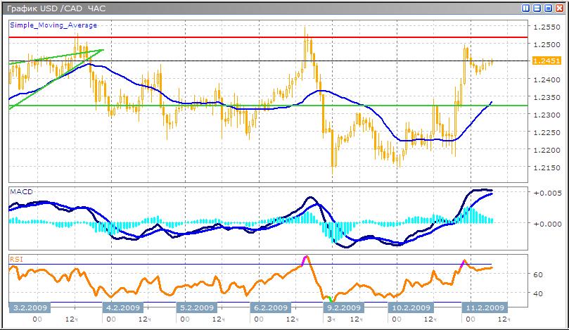 Покупатели в очередной раз пытаются проверить на прочность уровень сопротивления 1.2515, который уже дважды тестировался с начала этого месяца. Разочарование инвесторов в правительственном плане помощи финансовому сектору США, вызвало обвал на фондовых и сырьевых рынках, увеличив спрос на доллар, в результате чего, мы увидели очень активный рост пары с 18 часов 10 февраля. В настоящий момент технические индикаторы намекают на предстоящий откат, после броска вверх. В среднесрочной перспективе пара имеет достаточно сильный потенциал к росту, поскольку в данный момент мы находимся у нижней границы широкого бокового коридора, в котором пара торгуется с середины октября прошлого года.