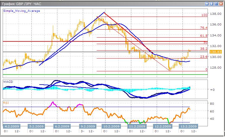 Как и ожидалось, пара, встретив достаточно сильное сопротивление на высоких уровнях, продолжила торги в нисходящем тренде. В настоящий момент бычьи настроение снова доминируют, однако длительный рост пары находится под угрозой. Рост достиг уровня коррекции фибоначчи 38.2%, и не встретив достойного сопротивления, легко преодолел его. График индикатора RSI достиг уровней перекупленности, что несколько настораживает, в то время как гистограмма MACD уверенно растет. Наиболее вероятно, что в краткосрочной перспективе, пара продолжит рост, однако в долгосрочном плане риски снижения очень велики. Итог сегодняшнего роста следует использовать как выгодную возможность встать в короткую позицию.